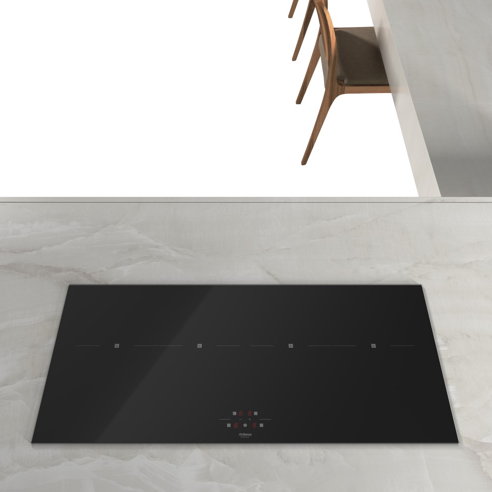 Indukcijska kuhalna plošča Airforce Easy 90 P je zasnovana za vse, ki v kuhinji pričakujejo več: več prostora, več moči in več nadzora. S svojim minimalističnim videzom in črno površino se popolno vključi v sodobne kuhinje, obenem pa ponuja zmogljivost, ki navduši pri vsakodnevnem kuhanju ali zahtevnejših receptih. Štiri indukcijske kuhalne cone zagotavljajo hitro in učinkovito segrevanje, Booster funkcija pa omogoča takojšen pospešek, ko ga najbolj potrebujete. S funkcijo Bridge lahko cone združite v večjo kuhalno površino, idealno za velike lonce ali podolgovate posode. Intuitivno upravljanje na dotik omogoča natančno nastavitev moči, vgrajeni časovnik, prikaz preostale toplote in varnostne funkcije pa skrbijo za brezskrbno uporabo ter večjo varnost v vsakem gospodinjstvu. Airforce Easy 90 P 2 ni le kuhalna plošča – je zanesljiv partner v kuhinji, ki združuje tehnologijo, estetiko in udobje ter dvigne kuharsko izkušnjo na višji nivo.
